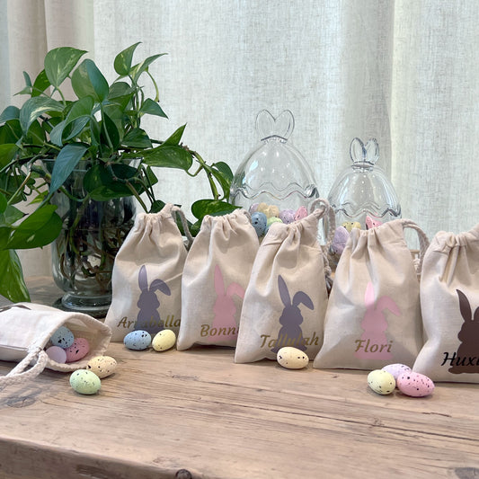 Personalised Easter Bunny Cotton Drawstring Gift Bags