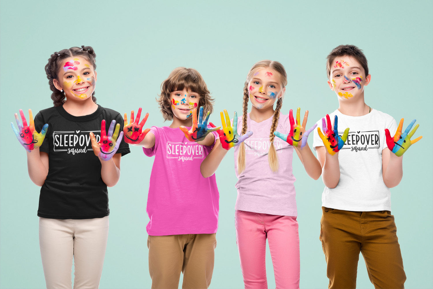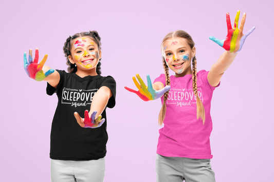 Looking for the best boys' and girls' sleepover and party t-shirts? You've found the ultimate destination at Pretty Little Printing. Our collection of stylish, personalised sleepover tees is designed to make every event unforgettable. Choose from a variety of designs and colours to create the perfect look for your child's special day. Our Tees are 100% cotton for comfort and are not only trendy but also durable. Whether it's a girls sleepover, gaming party, laser tag birthday celebration, or any occasion, Pretty Little Printing has you covered.