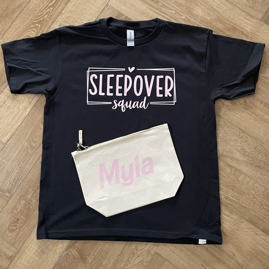 Sleepover Squad Kids Personalised T-Shirt & Gift Bag Party Set