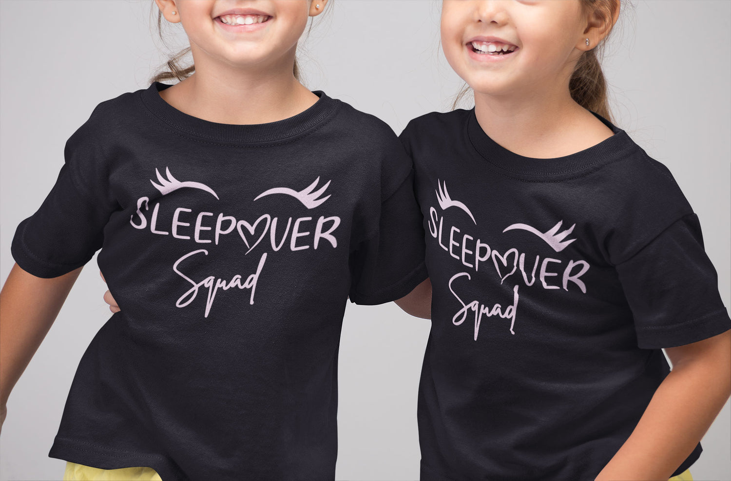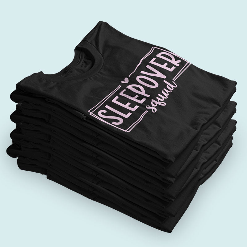 Make your child's sleepover or party extra special with our sleepover squad t-shirt. Perfect for any group of kids getting together for a night of fun and games.