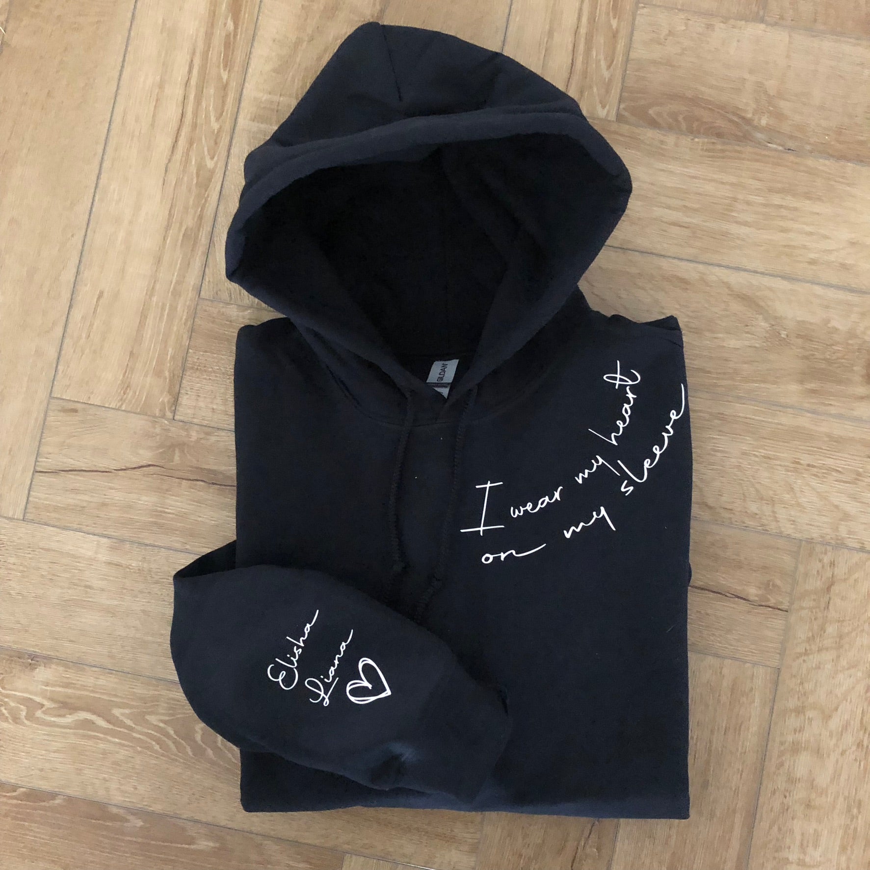 Please Choose, Sweatshirt or Hoodie & add the names you would like on the sleeve ( no limit of names)